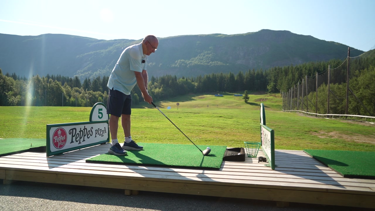 Sigve Bollestad hos Bodø Golfpark slår et slag på rangen. Også de opplever utfordringer med at baller blir borte og brukt feil.