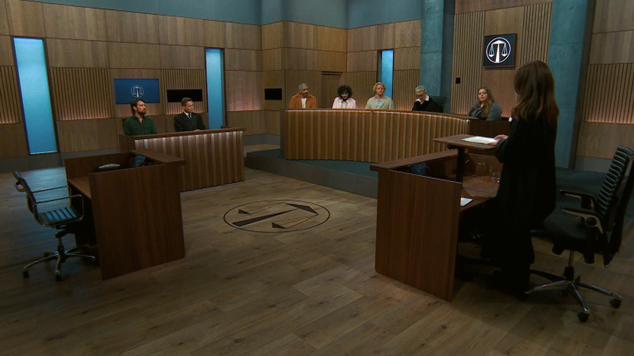 Rettssalen er bygd opp frå botnen av i eit av dei største studioa på NRK Marienlyst. Men måten kjendisane, hovuddommar, advokatar, tiltalt og vitne er plasserte, er slik dei sit i ein ekte norske rettssal.