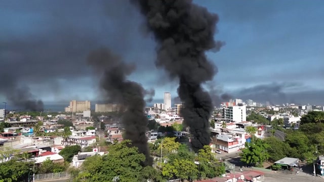 ReutersVideoer i sosiale medier viser røykskyer som veltet opp over byen Puerto Vallarta i Jalisco. Bilder viser og folk som løper gjennom flyplassen i delstatens hovedstad i panikk.