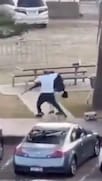 Videoen viser hvordan mannen gjemmer seg bak en bil og sniker seg opp bak en av skytterne, før han hopper på ham bakfra og får tak i våpenet. Han fyrer så av et skudd mot gjerningspersonen, som halter av gårde.