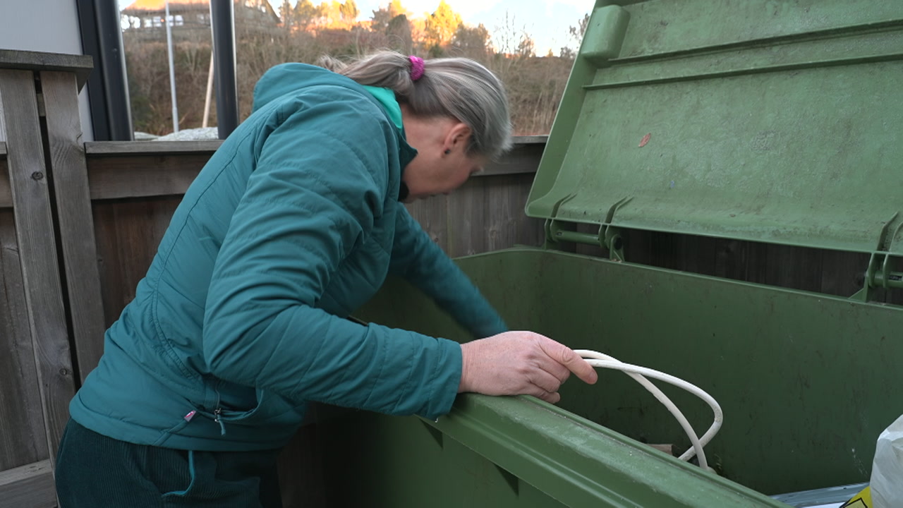Kirkeverge Annlaug Børve har sett seg lei folk som kaster søppelet sitt på kirkegården. Her tar hun NRKs utsendte med på en av sine daglige runder i bosspannene.