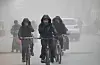 13. desember 2013 dekker syklister ansiktet under den kinesiske luft-apokalypsen. (Foto: Reuters / NTB)
