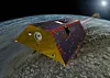GRACE er egentlig to satellitter som følger hverandre med omtrent 200 kilometers avstand. De hjelper forskerne med å veie snøen for å finne ut hvor mye vann det er i den. (Illustrasjon: NASA)