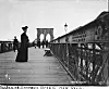 En norsk kvinne på toppen av Brooklyn Bridge i 1905. (Foto: Rugsveen, Johan Undset / Anno Musea i Nord-Østerdalen)