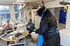 Taksidermistenes arbeidsplass. En utstoppet bjørn er fungerende forkleholder. (Foto: Yngve Vogt)