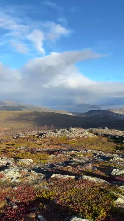 Video fra fjellene i Harstad lørdag. Ser man nøye etter kan man skimte noen små snøflekker.