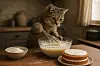 Bildet er KI-generert: Sora 2 er ikke tilgjengelig i Norge ennå, men OpenAI sin chatbot ChatGPT kan generere bilder basert på tekstinstrukser. (Illustrasjon: ChatGPT, prompt: «Katt som baker kake»