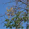 Bilde 1: Typiske symptomer på almesyke på forsommeren: visne grener med gule/brune blader i ellers grønn krone. (Foto: I. Børja)