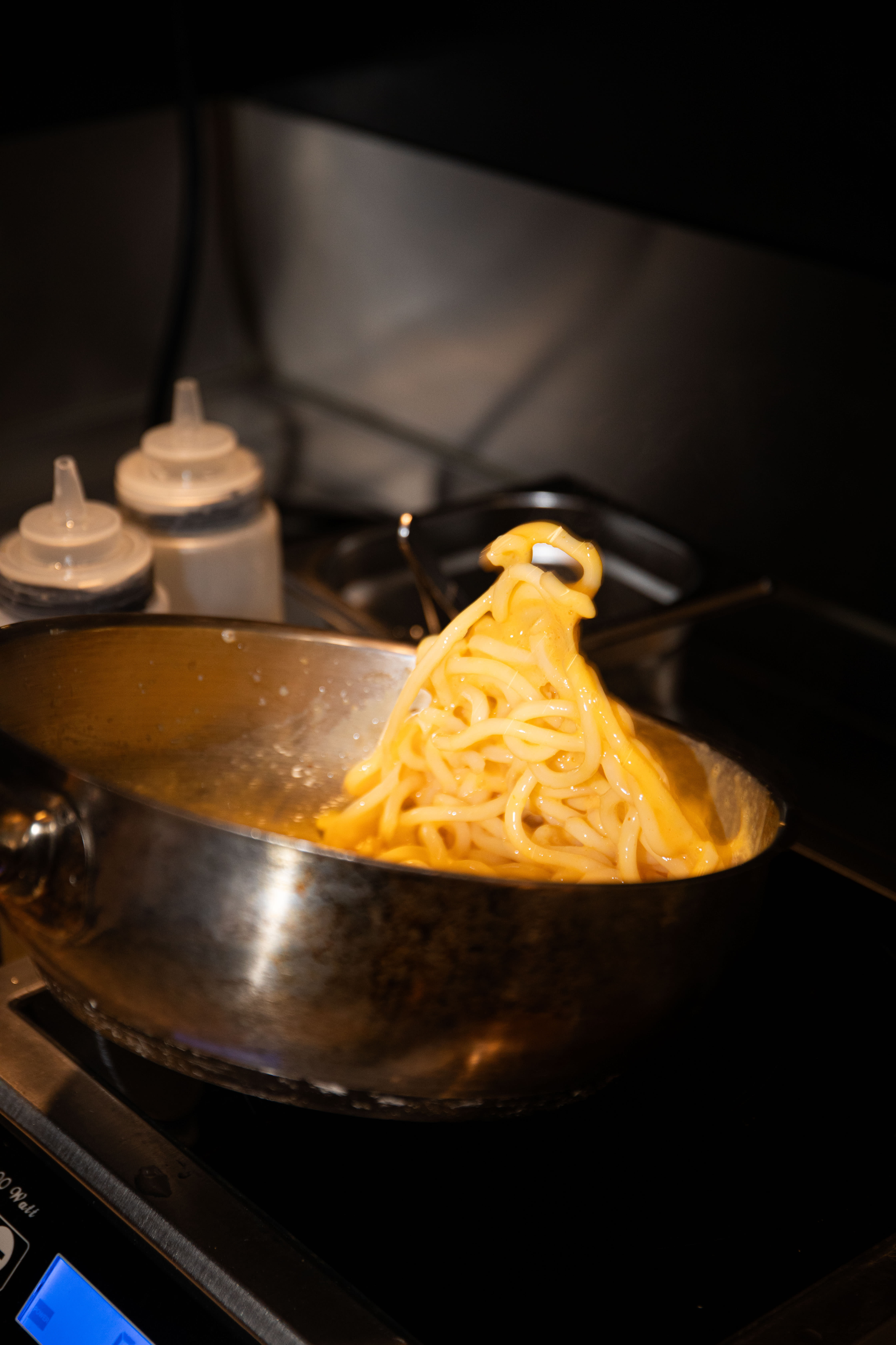 – Vi dro til Tokyo i fjor og prøvde masse mat. Målet var å smake på rettene som ikke er å finne i Oslo, som vi kan prøve på Pan. Vi stilte oss i en lang kø ved en liten restaurant. Her skulle svært mange ha udon carbonara, og vi ble nysgjerrige, sier kulinarisk og bakeriansvarlig Reverdy Pineda.