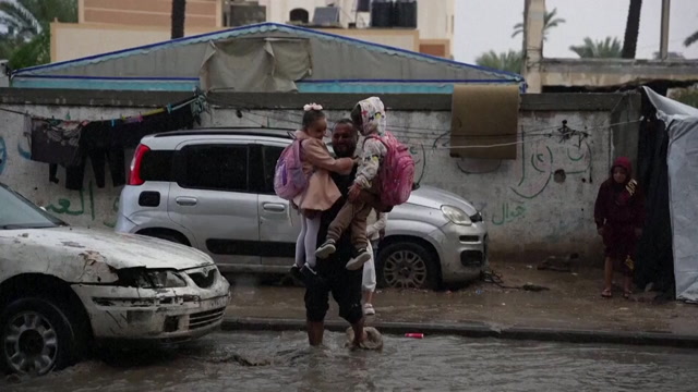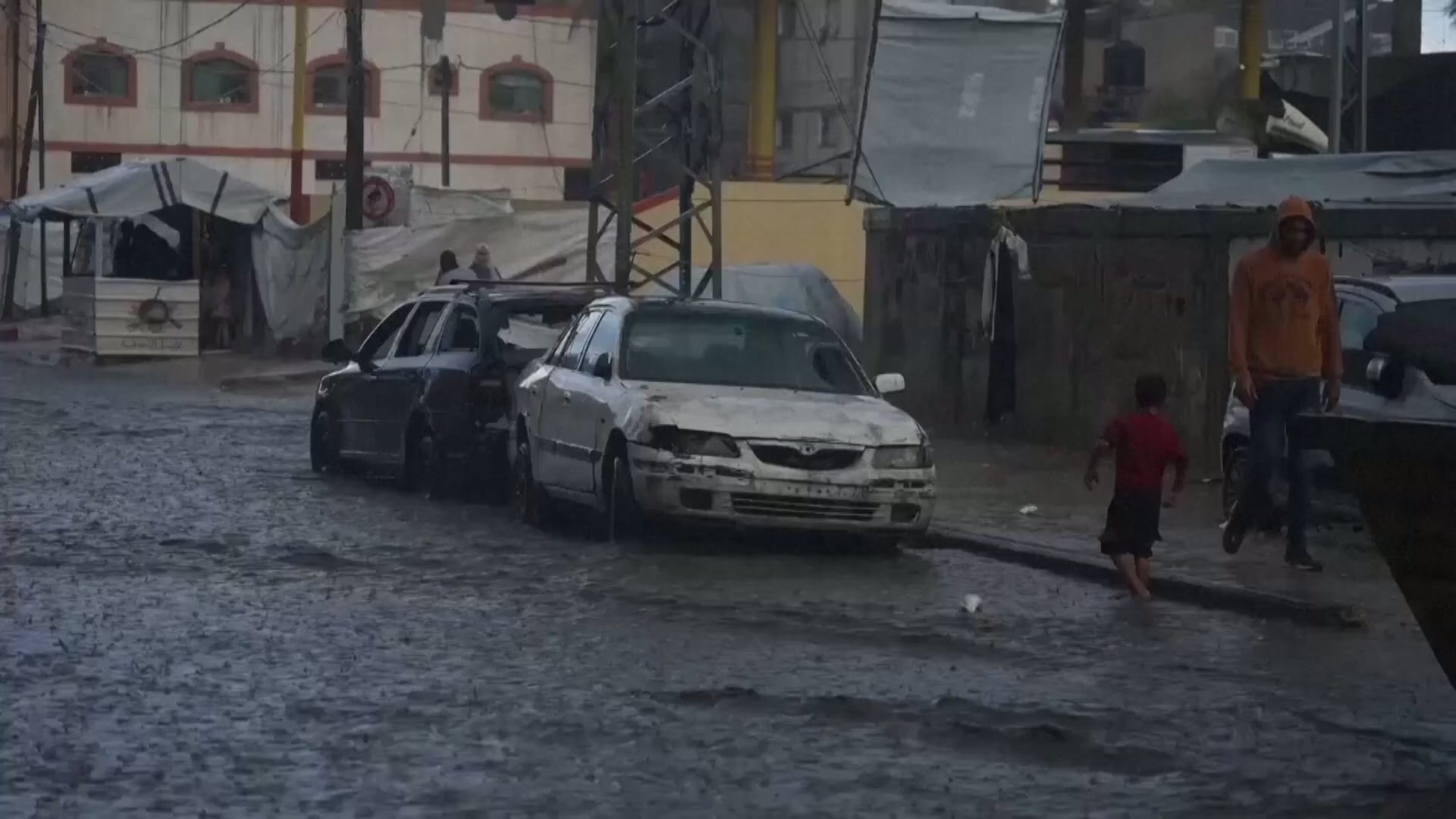 Sesongens første kraftige regnvær forverrer situasjonen for de mange menneskene som fortsatt lider på Gazastripen.