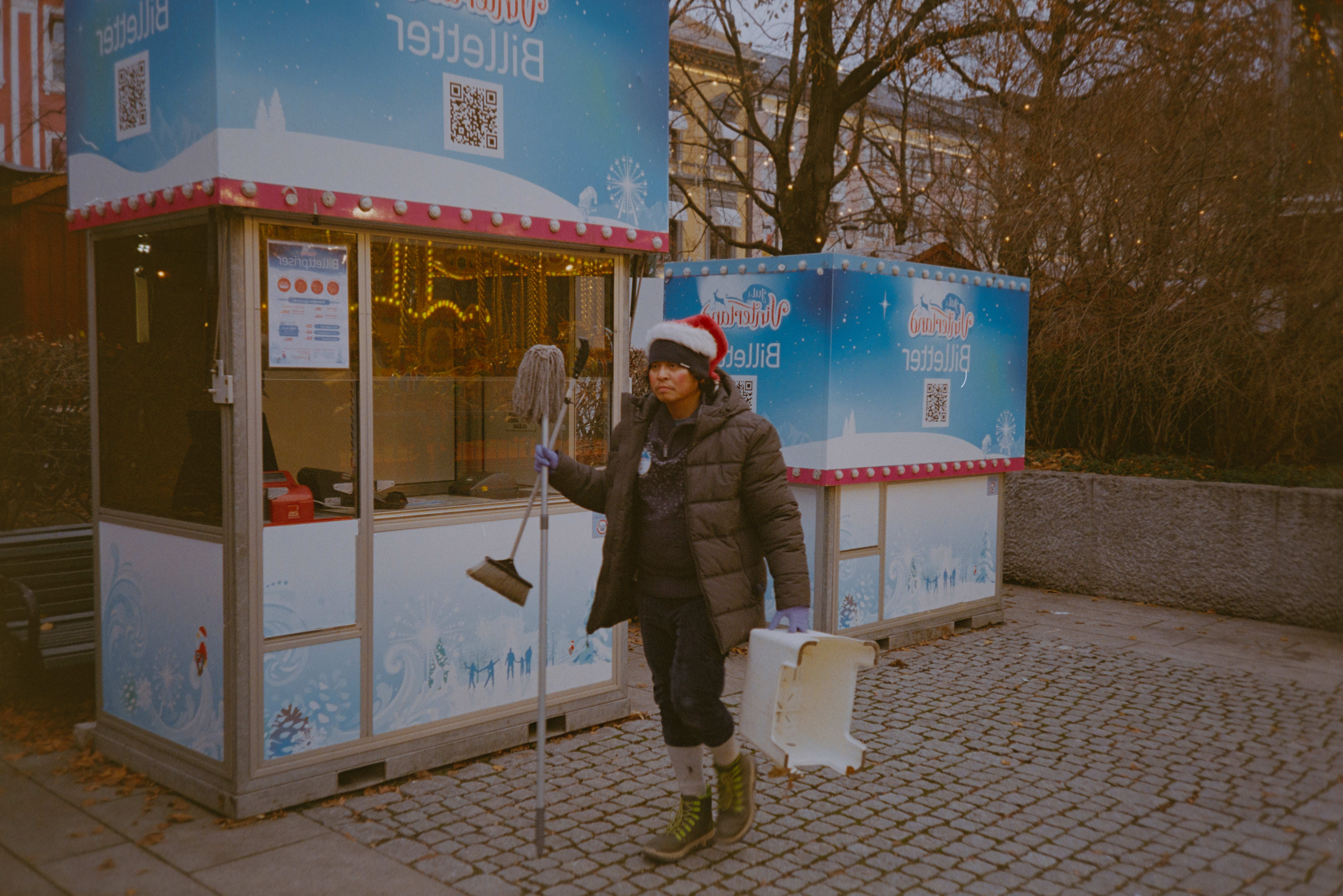 En nisse gjør de siste opprenskningene før stengetid. Foto: Marte Gundersen