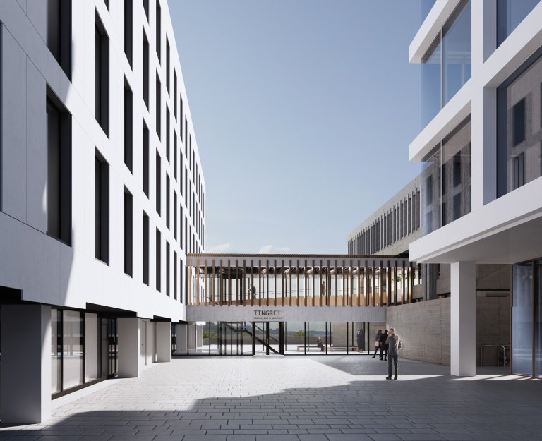 Nye Asker og Bærum tingrett ble innflyttingsklar nå i høst. (Illustrasjon: Entra)