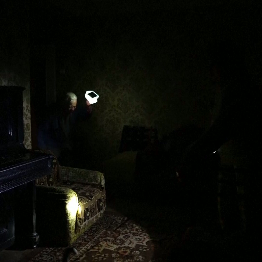 Foto: Gleb Garanich / Reuters / NTBNår straumen forsvann, tok Raisa Derhatjova sjølv grep. Ho har laga si eiga lommelykt.