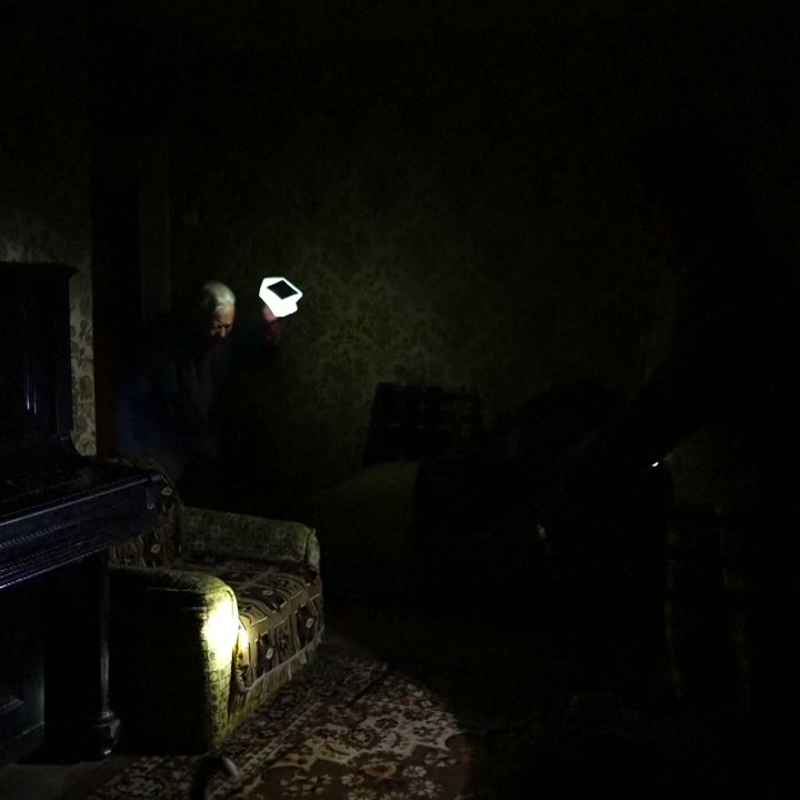 Foto: Dan Bashakov / AP / NTBI ei anna leilegheit i byen tok Tatiana Tatarenko med seg lommelykt for å besøke ein nabo.