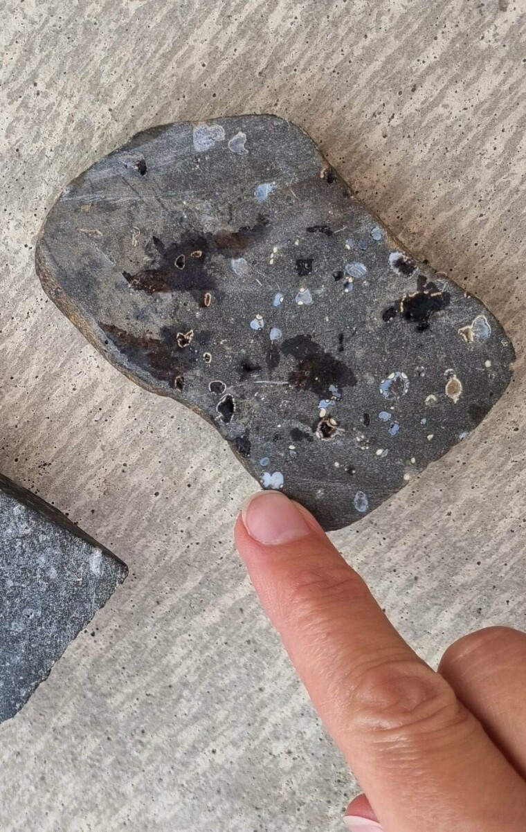 Og så reagerte gassene med andre stoffer i den vulkanske steinen og ble felt ut som harde mineraler.