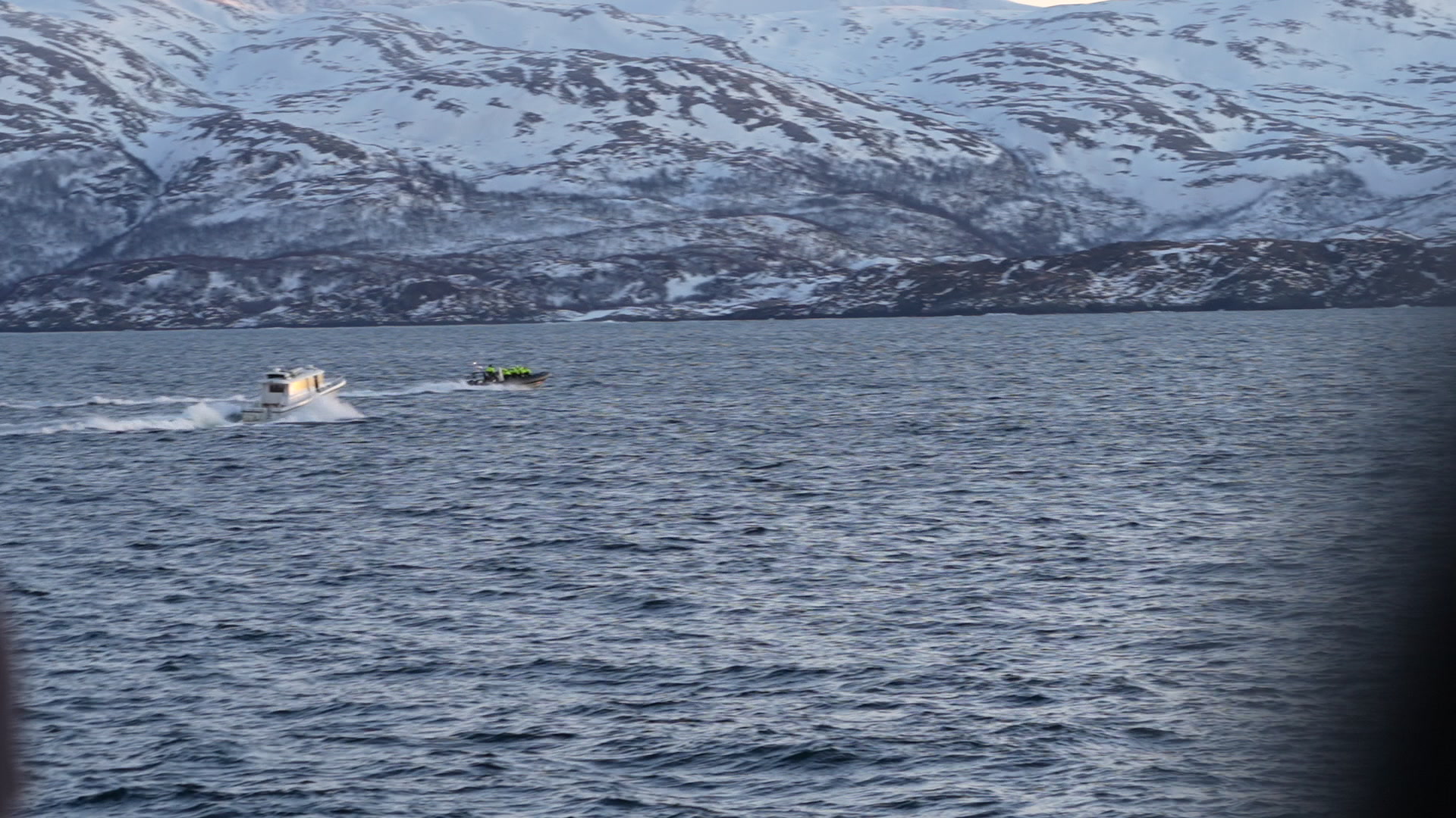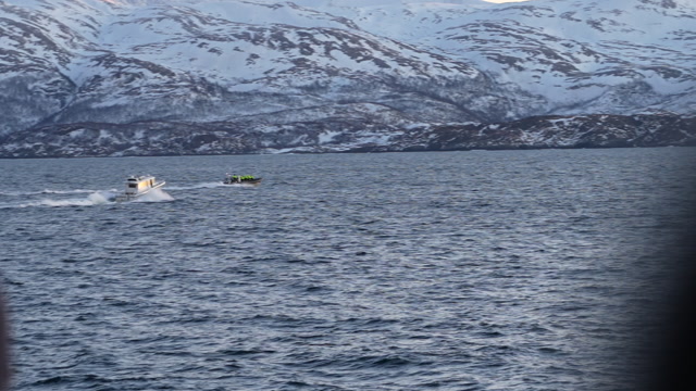 Båtene strømmer til ved synet av en spermhval utenfor Skjervøy. NRK har ikke klart å identifisere aktørene i disse båtene.