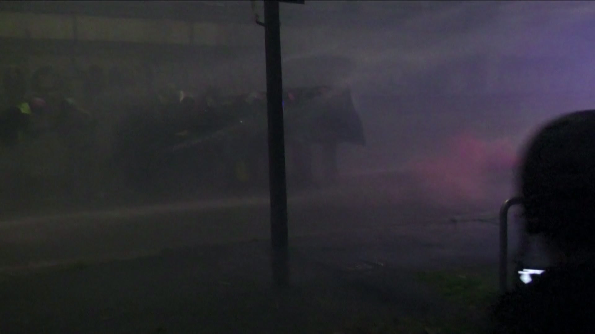 Politiet svarte med tåregass og vannkanoner. Seks demonstranter ble arrestert.