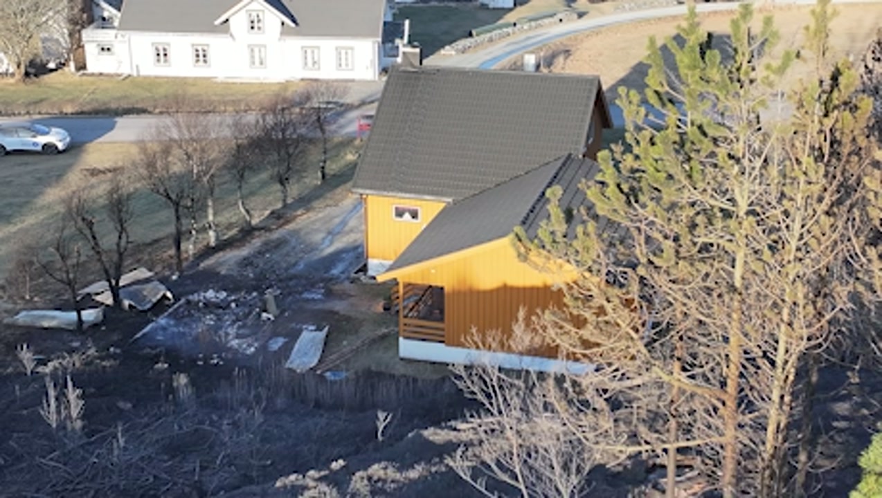 – Her har det vært så nære på som man bare kan få det. Det er svartbrent helt inntil husveggen her, sier NRKs reporter på stedet.