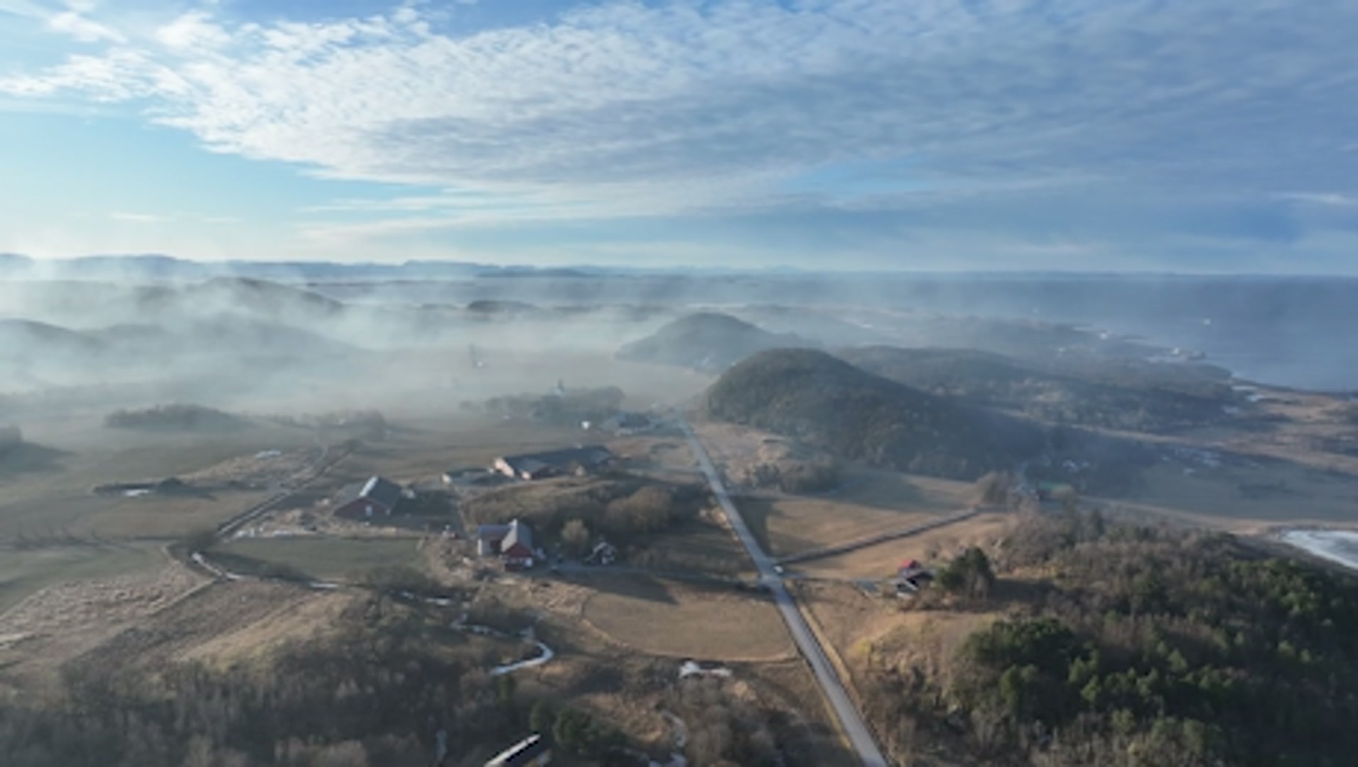 Slik så det ut søndag morgen. Bilde tatt fra skogbrannhelikopter.
